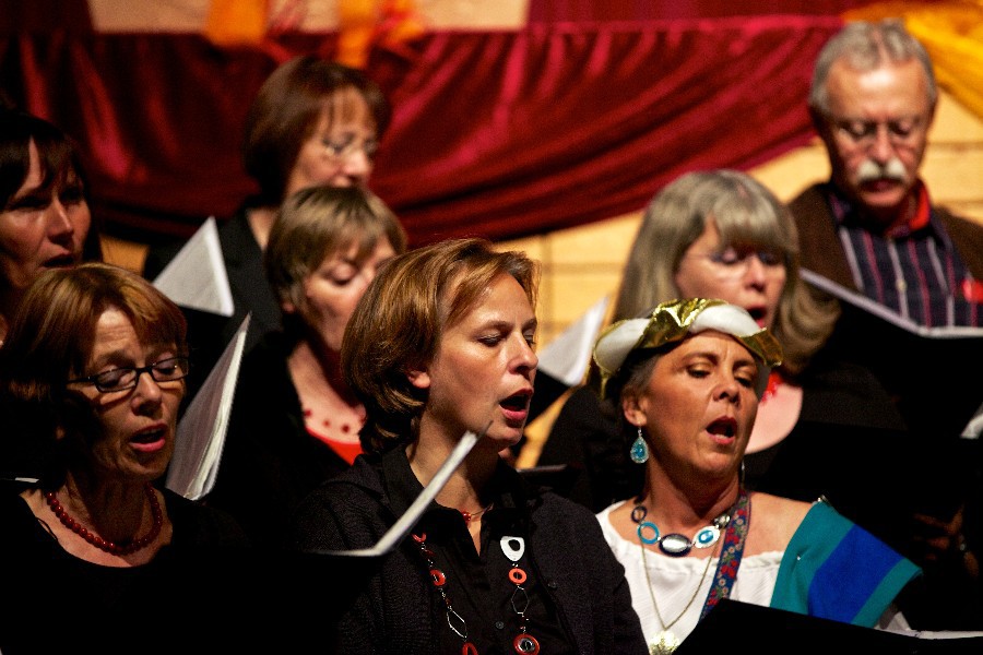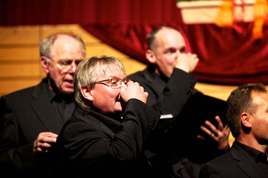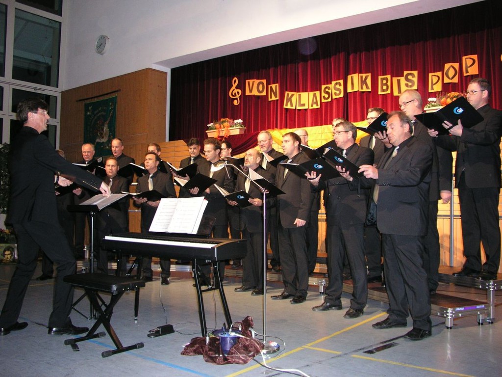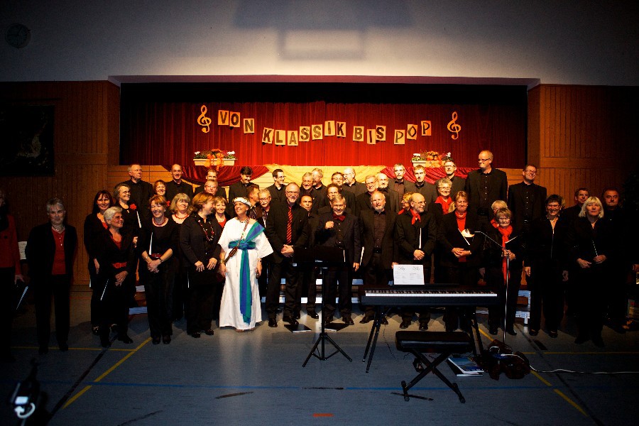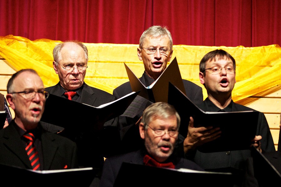 Der Männerchor sang Kompositionen von Clarke, Dickkopf und Rammstein ebenso wie das "Ave Marie" von Franz Biebl, der sich nicht nur der A-capella-Chormusik verschrieben hatte, sondern auch dem Volkslied. Mit dem Lied "Ein Mädchen und ein Matrose" setzte der Männerchor einen grandiosen Schlusspunkt des Abends. Wie zu erwarten durften die Chöre nicht ohne Zugabe von der Bühne gehen und traten am Ende des Abends gemeinsam auf.