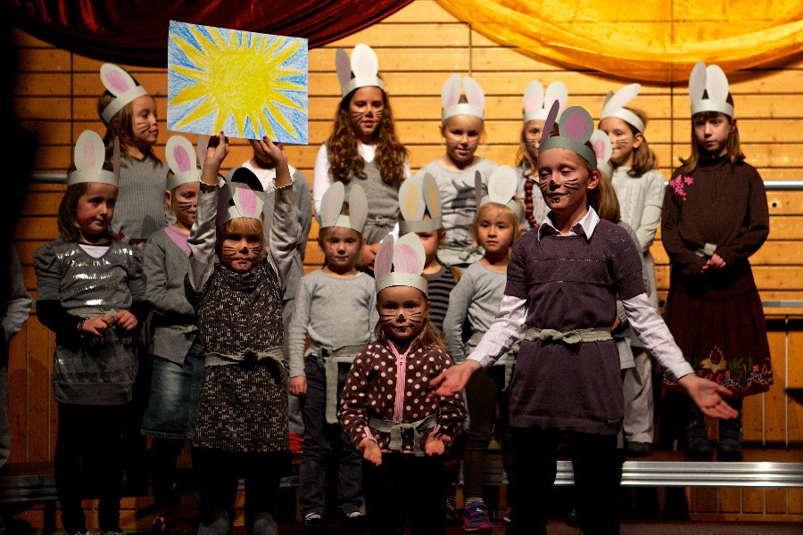 Singen taten dann in der Mehrzweckhalle auch die Seebachspatzen, mit Liedern und Gedichten zum Herbst. Die tanzenden Mäuse und die fallenden Blätter zeigten dann auch, der Herbst ist da. Die