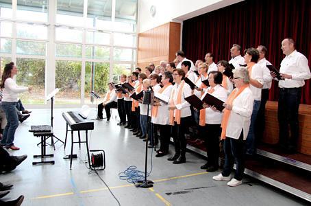 Herzogenaurach, geleitet von Cornelia Schmid zu vernehmen. Der Chor hatte auch "Morgenlicht leuchtet" ("Morning has broken") und "Yellow Submarine" von John Lennon und Paul McCartney mitgebracht. Mit