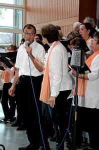 Das begeisterte Publikum kam aber auch nicht um eine Mitwirkung herum. Gerald Fink übte mit den Zuhörern einen Kanon ein: "Singen macht Spaß, singen tut gut, ja,