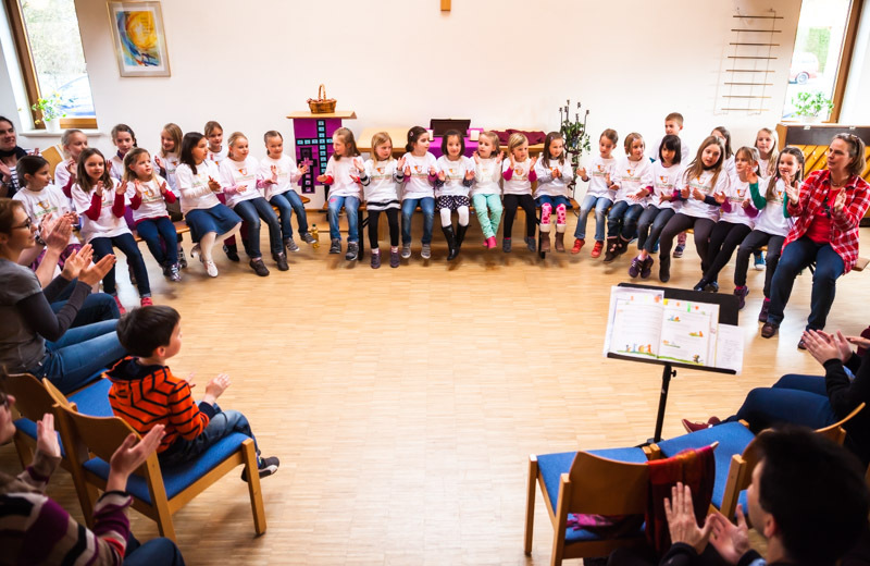Zahlreiche Eltern, Großeltern und Geschwister waren nach Großenseebach gekommen, um sich im Rahmen einer Sing- und Mitmachstunde anzuhören, was die 37 "Seebachspatzen" in den letzten Monaten gelernt hatten.