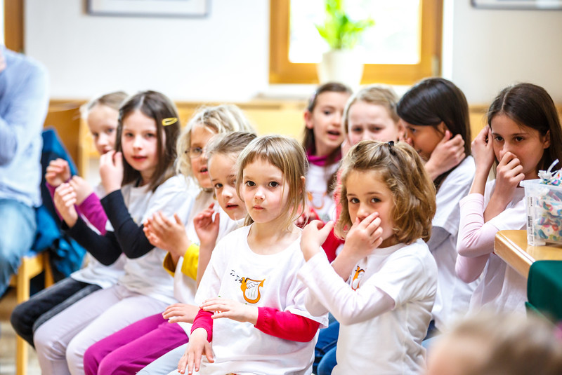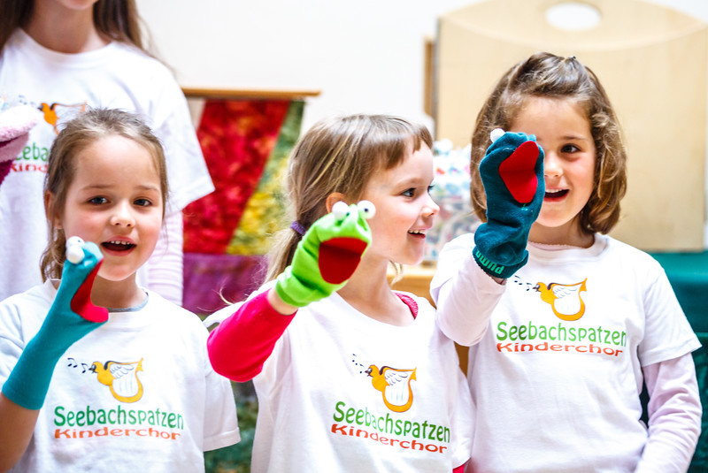 Eine bunte Auswahl aus seinem aktuellen Programm präsentierte der Kinderchor Seebachspatzen bei seinem Sing- und Mitmachkonzert. Rhythmusübungen, an denen sich auch die Zuschauer versuchen durften,